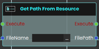The Get Path From Resource node enables the system to retrieve the exact URL or local file path of a specific resource or file. This node requires the exact "FileName" of the target file as an input.