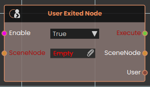 The User Exited Node event node tracks the physical boundaries of a specific 3D object and activates the exact moment a user's avatar stops colliding with or fully exits its volume. While enabled, the node watches the targeted SceneNode and triggers its output as soon as the user completely separates from the object, passing forward a reference to the specific User who left before continuing the execution logic. And like User Enter Node, it also applies to all participants within multiplayer VR collaboration scenes.