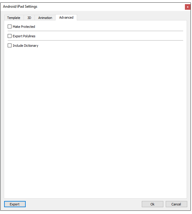 The Export Polylines option, when checked, enables exporting polylines included in the 3D scene.